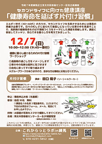 募集中 区民企画講座「セカンドライフに向けた生前整理講座と健康講座」②健康寿命を延ばす片付け習慣