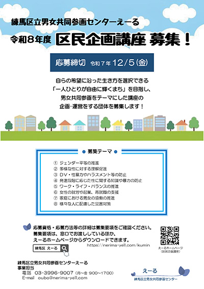令和8年度実施の区民企画講座について、以下のとおり募集いたします